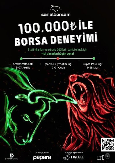 İstanbul Teknik Üniversitesi (İTÜ) Yatırım Kulübü tarafından bu yıl 9. kez düzenlenecek olan SanalBorsam, öğrencilere finansal okuryazarlık konusunda bilgi verici eğitimler sunarken deneyim kazanmalarını amaçlayan, aynı zamanda ücretsiz olan bir yarışma. Yarışmada dereceye giren katılımcılar, staj, burs ve çeşitli hediyelerle ödüllendiriliyor.